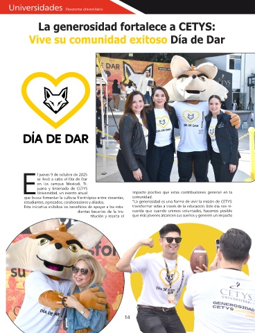 estudiantes, egresados, colaboradores y aliados.    “La generosidad es una forma de vivir la misión de CETYS: