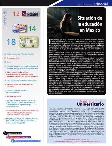Panorama Universitario, Año 30, No. 331 Octubre 2025, es una publicación mensual