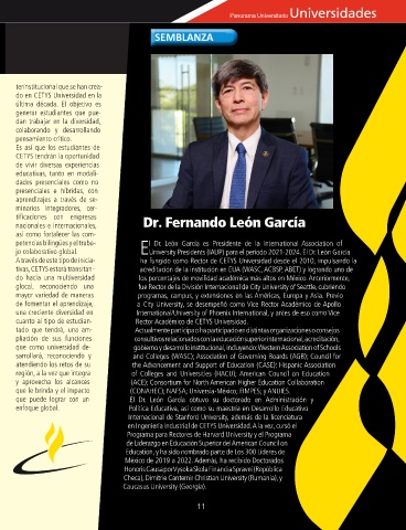 A través de este tipo de inicia- ha fungido como Rector de CETYS Universidad desde el 2010, impulsando la