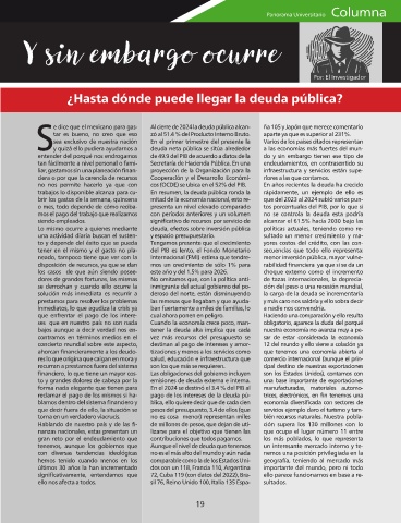 e dice que el mexicano para gas- Al cierre de 2024 la deuda pública alcan- ña 105 y Japón que merece comentario