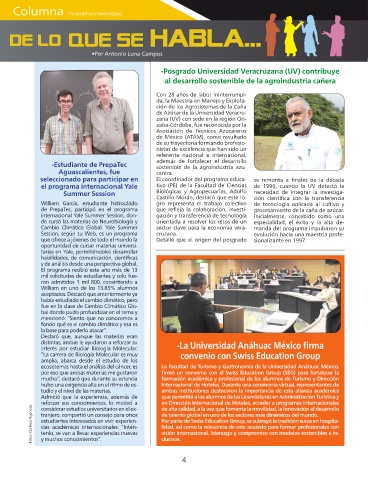 de PrepaTec, participó en el programa que refleja la colaboración, investi- procesamiento de la caña de azúcar.