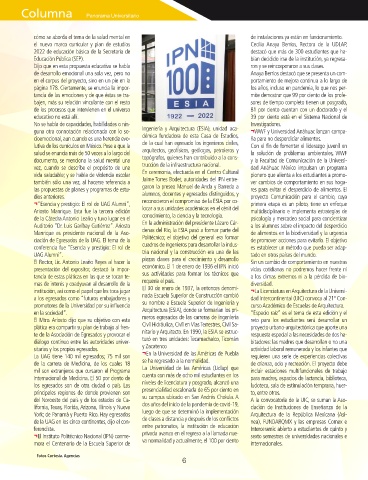 institución, así como el papel que les toca jugar El 30 de enero de 1937, la entonces denomi- ¬La Licenciatura en Arquitectura de la Universi-