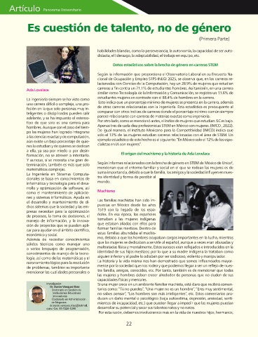 lacionadas con Ciencias de la Computación, hay un 28.9% de mujeres que estudian