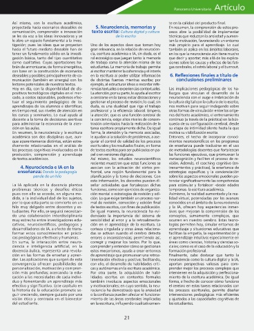 tener un fundamento sólido en la investi- cia, escritura académica e IA, sin duda, es el en los que la neurociencia aún tiene mucho