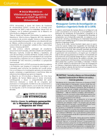 en Vitivinicultura (CEVIT), arrancó en el trimestre julio- Química e Ingeniería Verde de la UANL